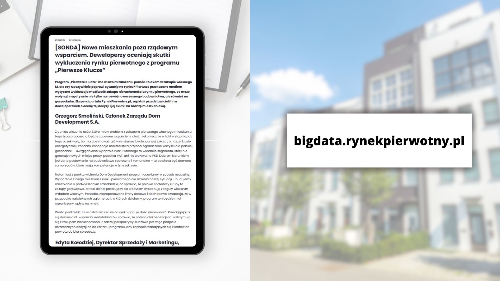RynekPierwotny.pl: [SONDA] Nowe mieszkania poza rządowym wsparciem. Deweloperzy oceniają skutki wykluczenia rynku pierwotnego z programu „Pierwsze Klucze”