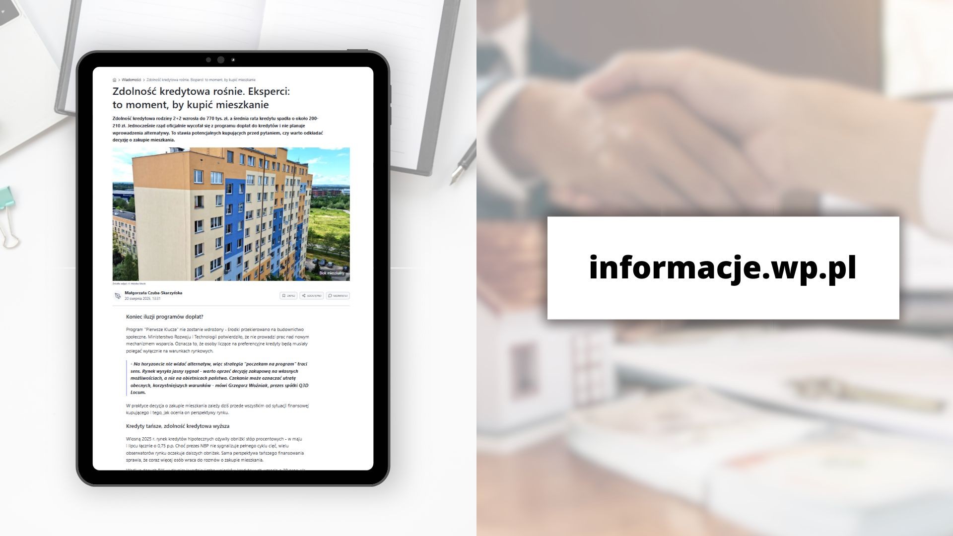 Wp.pl: Zdolność kredytowa rośnie. Eksperci: to moment, by kupić mieszkanie