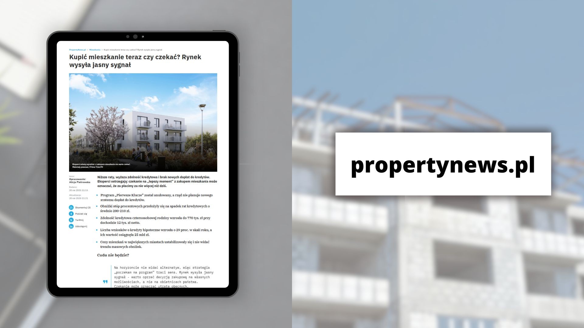 Propertynews.pl: Kupić mieszkanie teraz czy czekać? Rynek wysyła jasny sygnał