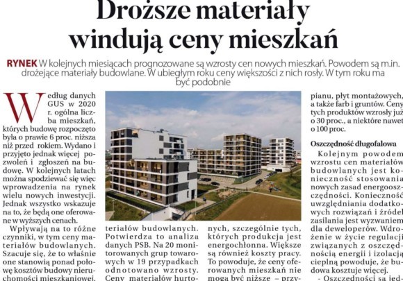 Droższe materiały windują ceny mieszkań.