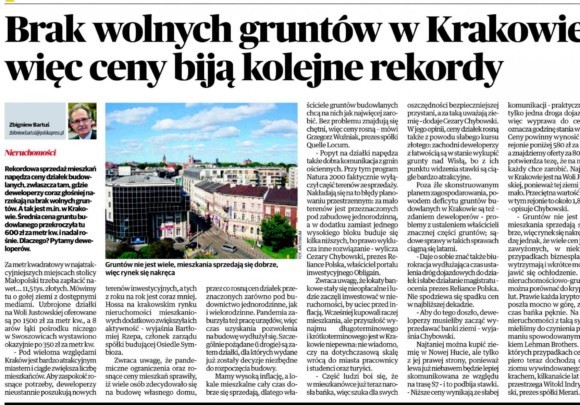 Brak wolnych gruntów w Krakowie, więc ceny biją kolejne rekordy.